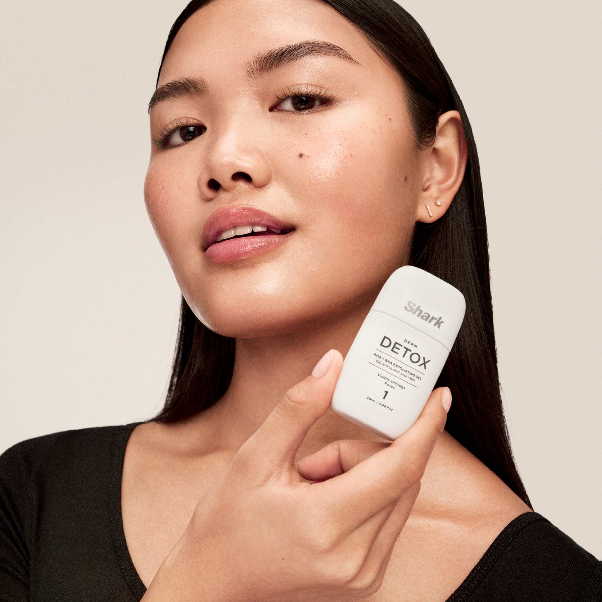 Shark™ FacialPro™ Glow with DePuffi™ is a 2-in-1weekly facial system that elevates your skincare routine. It revitalizes dull, congested, and dry skin through chemical + physical exfoliation and hydro-extraction to clear away debris, excess oil, and dead skin cells while flooding skin with hydration. The result: your most radiant, glass-skin glow revealed.