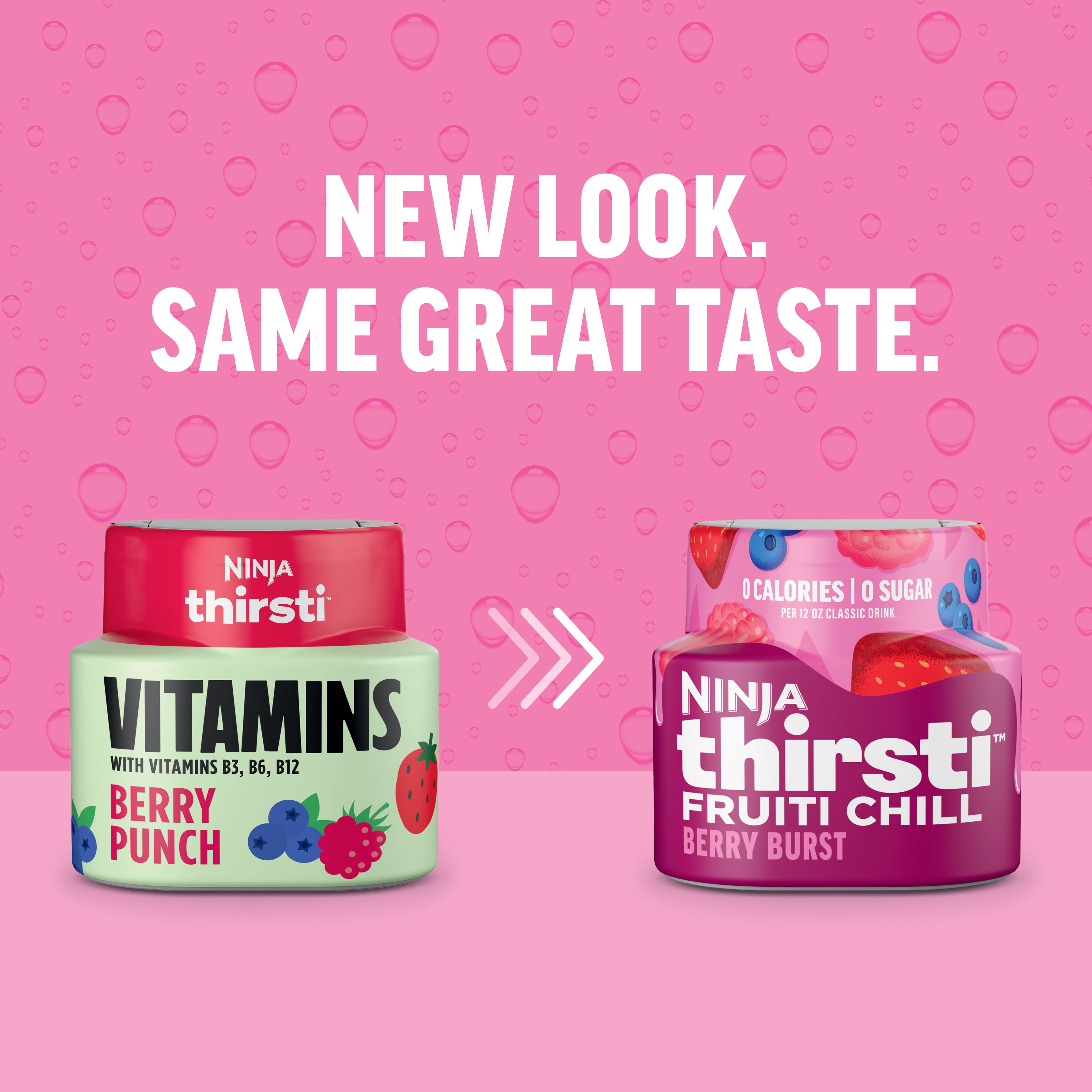 The vitamins that every-berry needs. Get your daily dose of deliciousness with Ninja Thirsti™ VITAMINS Flavored Water Drops. Create classic drinks with a boost of vitamins. VITAMINS Flavored Water Drops contain B vitamins, 0 calories, 0 sugar, and colors from natural sources. Enjoy a single flavor or combine any two flavors to create your signature drink. Always dilute and compatible only with the Ninja Thirsti™Drink System.