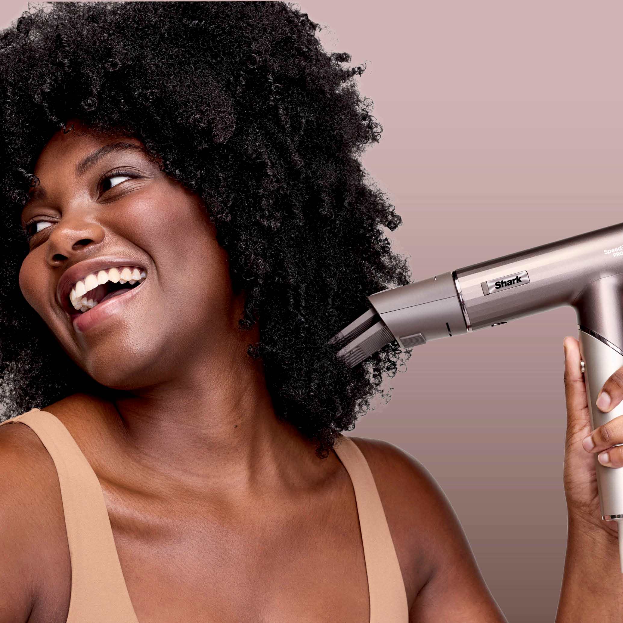 Meet the Shark® SpeedStyle™ Pro FLEX Hair Dryer System. Unfolds for salon-quality styles on all hair types with professional power at home, no heat damage. Includes Scalp Shield — designed to protect new hair growth from extreme heat.