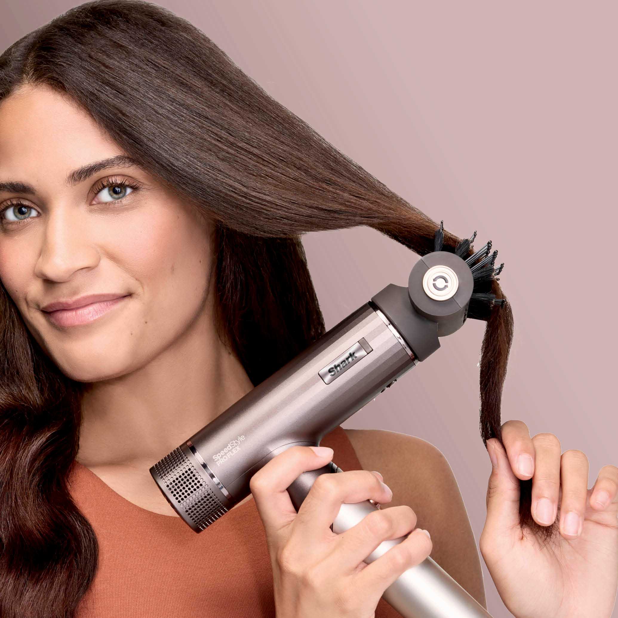 Shark® SpeedStyle™ Pro FLEX gets a glow up in Cosmic Blush. Unfolds for salon-quality styles on all hair types with professional power at home, no heat damage. Includes Scalp Shield — designed to protect new hair growth from extreme heat.