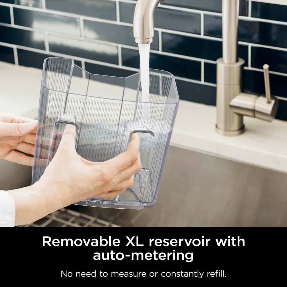 - REMOVABLE RESERVOIR WITH AUTO-METERING: Easy-to-fill, removable water reservoir with auto-metering to sense water amount, so there’s no need to measure or constantly refill.