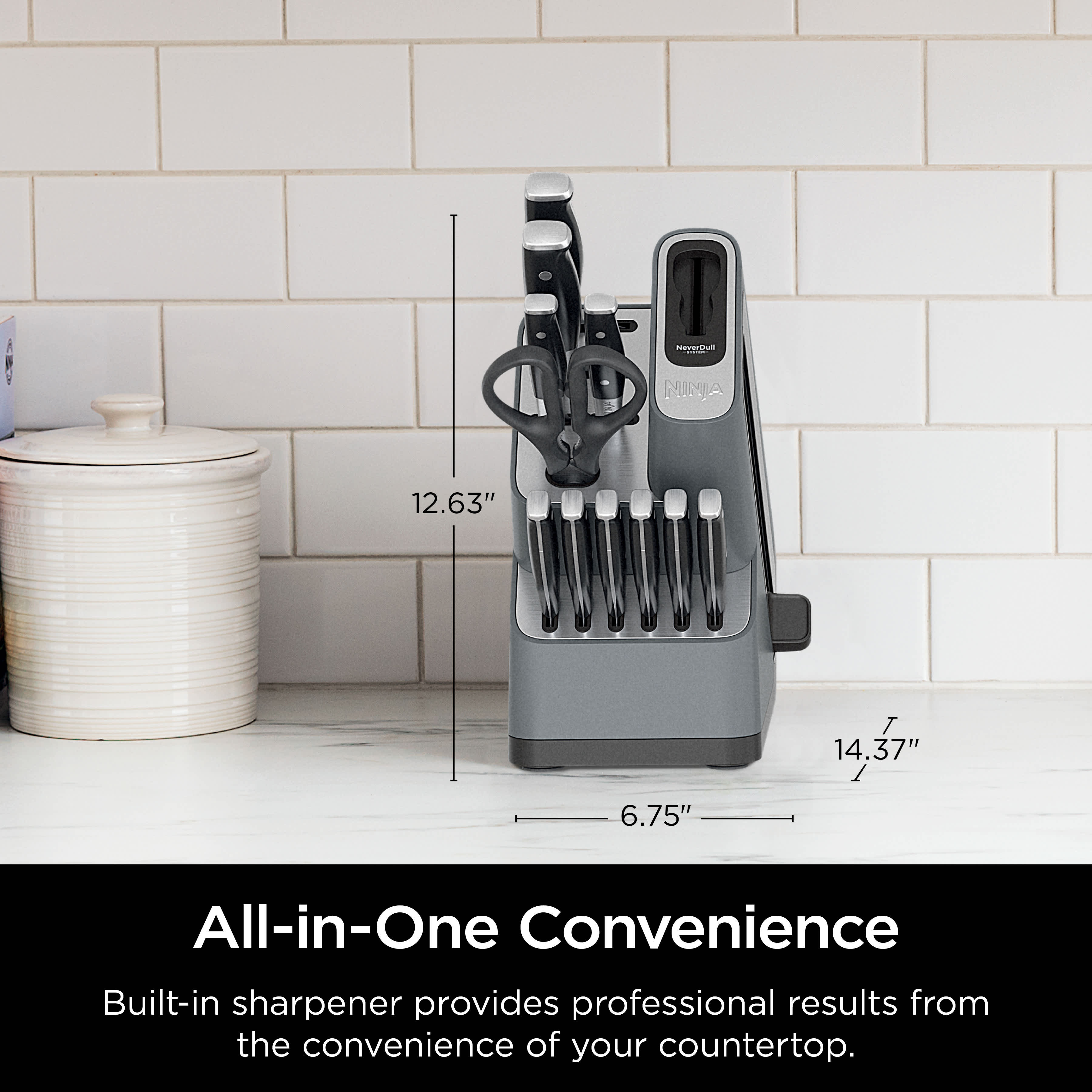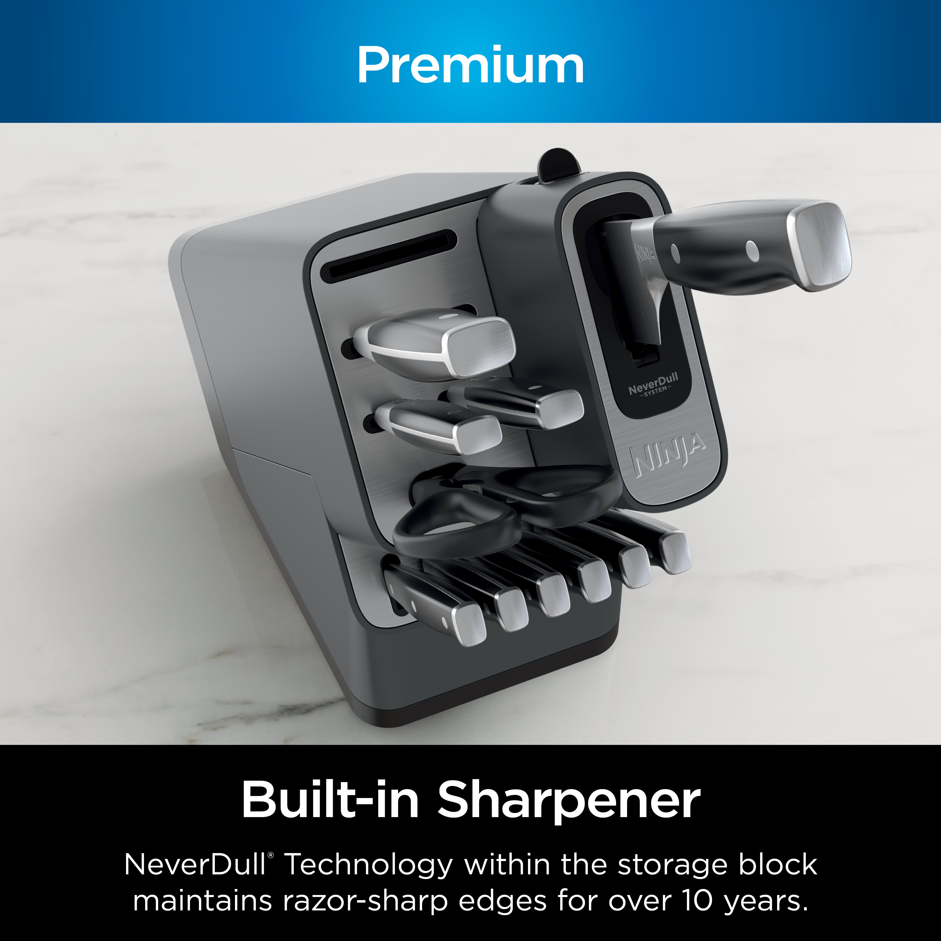 Introducing the Ninja NeverDull® Premium Knife System, the premium knives that stay razor-sharp for over 10 years. With only a few swipes of the built-in foolproof sharpener, this all-in-one system maintains the sharp edge you crave.