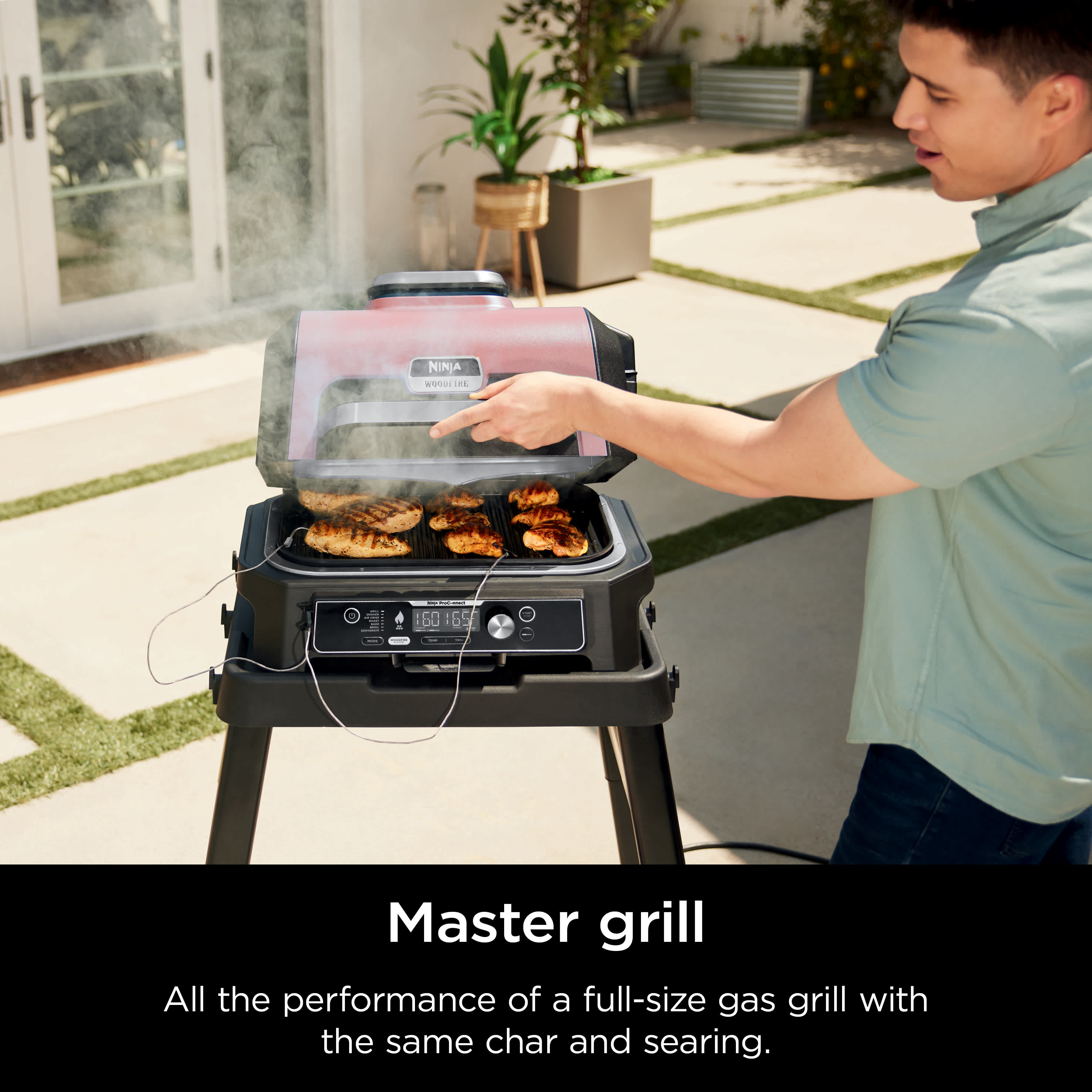 - NINJA WOODFIRE TECHNOLOGY: Powered by electricity, flavored by real wood burning pellets for all the flavor and none of the flame. Add smoky flavor you can see and taste.