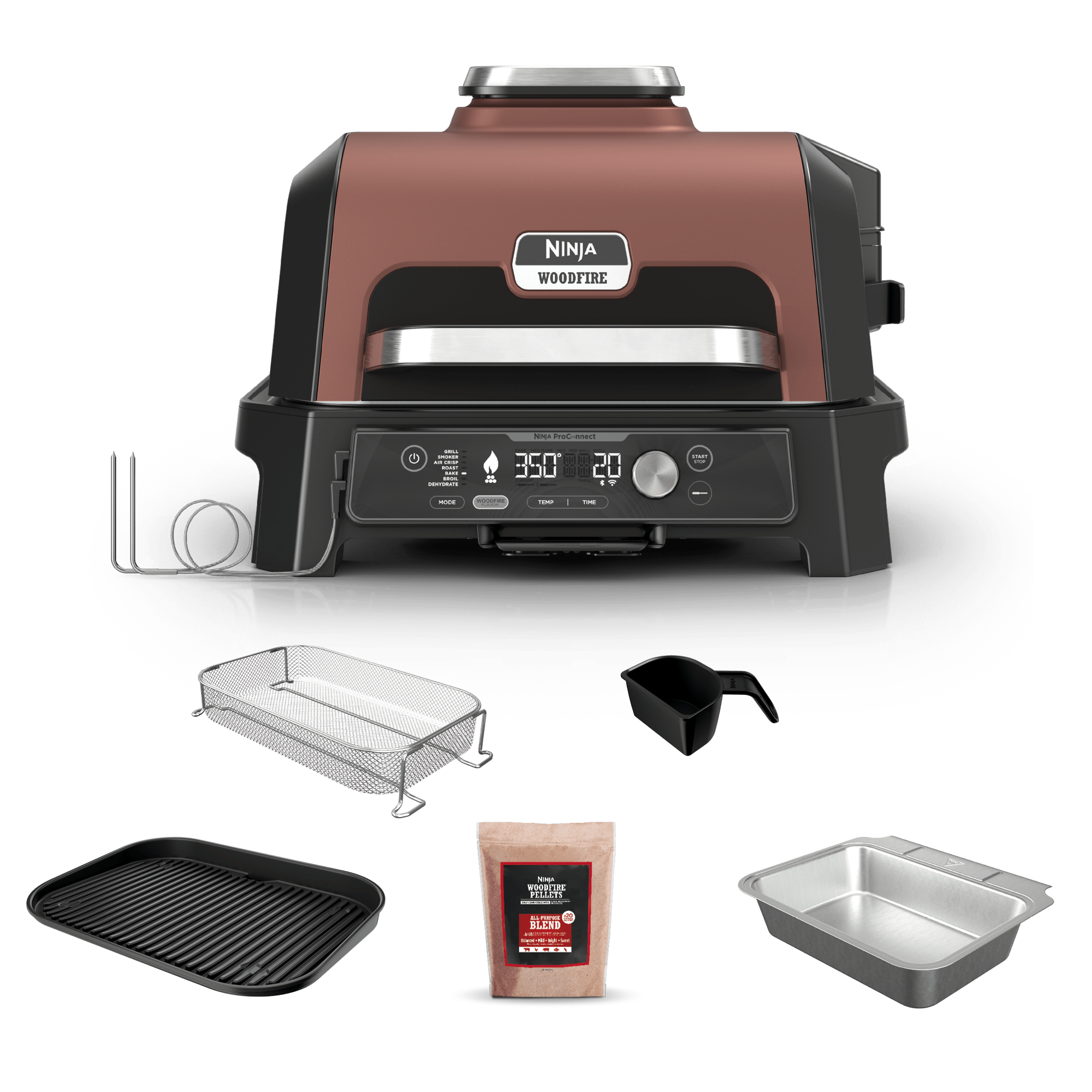 - NINJA WOODFIRE TECHNOLOGY: Powered by electricity, flavored by real wood burning pellets for all the flavor and none of the flame. Add smoky flavor you can see and taste.
