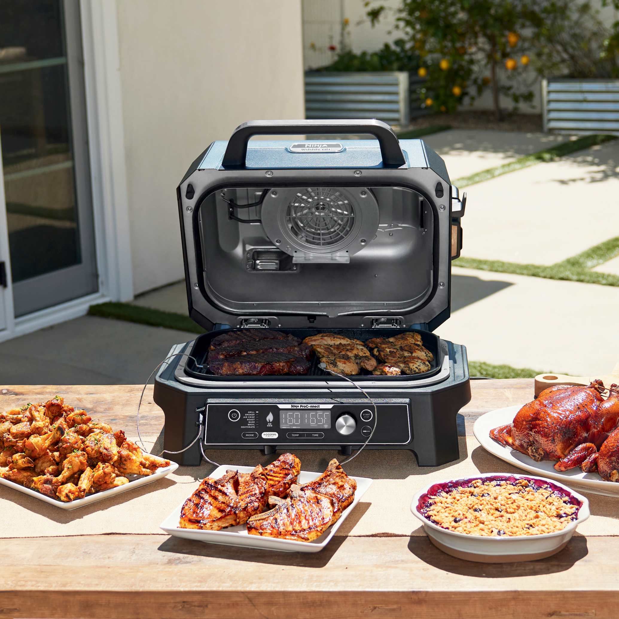 Enjoy your cookout with the fully connected Ninja Woodfire ProConnect™ Premium XL Outdoor Grill & Smoker. With Ninja ProConnect™, monitor and control the cooking of 2 different proteins, get real-time notifications to your phone, and even access recipes and cooking charts, all from the palm of your hand. Master Grill, BBQ Smoke, and Air Fry with 100% authentic smoky flavor you can taste.