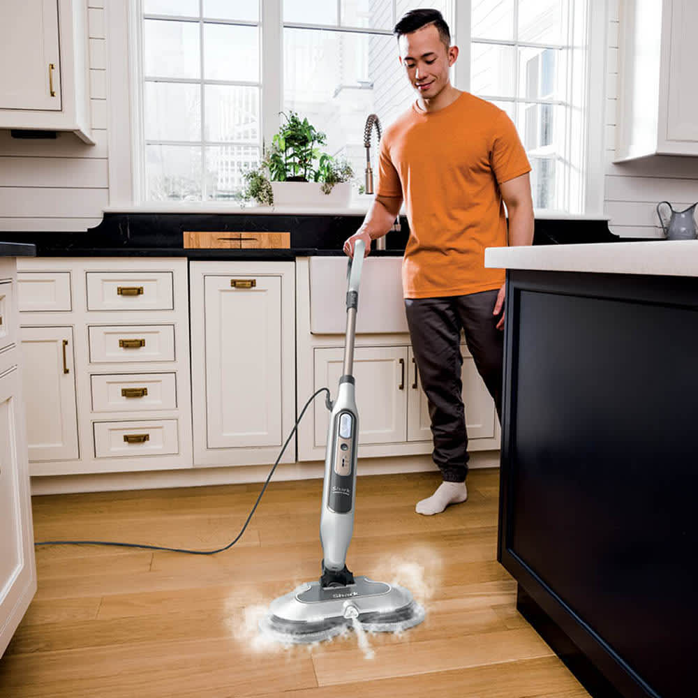 The Shark® Steam & Scrub with Steam Blaster® technology mops, gently scrubs and sanitizes* all at once while removing 99.9% of common household bacteria** using just water. Powerful steam and rotating pads provide up to 2X better stuck-on stain removal vs. a traditional steam mop^. A powerful steam blast that is controlled at the touch of a finger to provide targeted steam power where you need it most. Rotating pads deliver an effortless glide and a smooth cleaning experience—the pads do all the work.